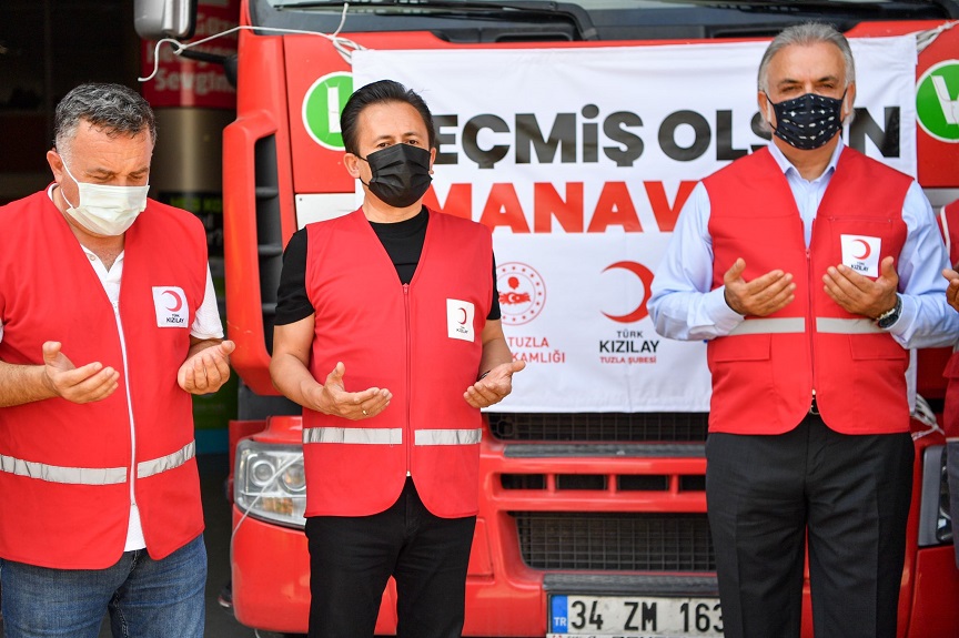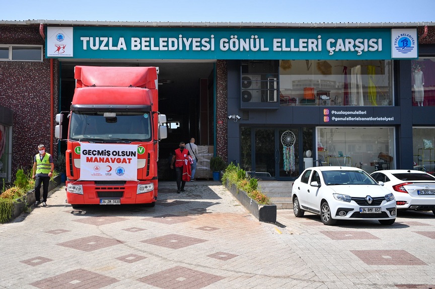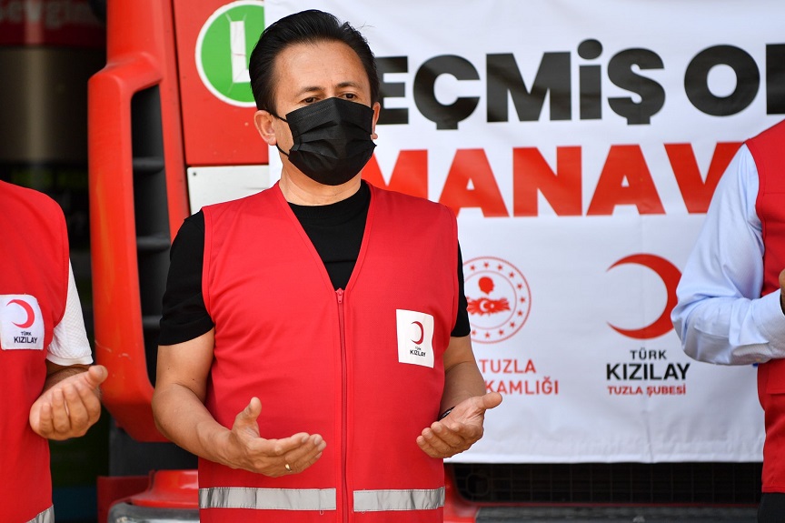 Antalya’nın Manavgat İlçesinde 28 Temmuz Çarşamba Günü 4 Ayrı Noktada Başlayan Orman Yangınları Yerleşim ve Tarım Alanlarına da Sıçradı. Yangını Kontrol Altına Alma Çalışmaları Devam Ederken Tuzla Belediyesi, Yanan Ormanlık Alanları Yeniden Canlandırmak İçin 5 Bin Fidan Bağışlanacağını Açıklamıştı. Bugün De Tuzla’dan Manavgat’a Yardım Eli Uzandı. Tuzla Kaymakamlığı Koordinasyonunda, Tuzla Belediyesi Ve Türk Kızılayı Tuzla Şubesi İşbirliği İle İçerisinde Gıda Kolisi, Hijyen Set, Ve Temel İhtiyaç Malzemelerin Olduğu Yardım Tırı Yola Çıktı. Tuzla Belediyesi Gönül Elleri Çarşısı’ndan Bulunan Gıda Kolilerini Yardım Tırına Yüklendiği Sırada Dualar Edildi. Yardım Tırı İle Birlikte Tuzla Belediye Başkanı Dr.Şadi Yazıcı’nın Talimatıyla Bölgeye 2 Su Tankeri de Gönderildi. Tuzla Belediye Başkanı Dr. Şadi Yazıcı,” “Bir Anda Bu Kadar Yangının Olması Şaibeler Doğuruyor. Hukuk Bununla İlgili Gerekli Araştırmayı Yapacaktır. Bizim Yapmamız Gereken Maddi Durumumuz, İmkânlarımız Ne Olursa Olsun Doğal Afetler Karşısında Yardımlaşma, Dayanışma, Birbirimize Destek Olmaktır. Bizler Elimizden Geleni Yapmaya Gayret Gösteriyoruz” İfadelerini Kullandı.