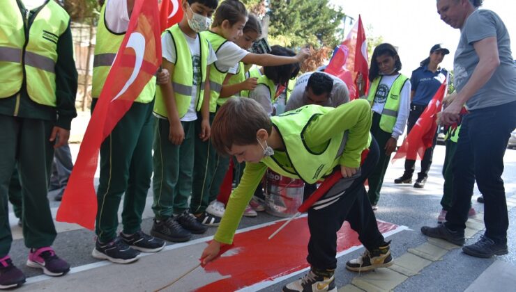 TUZLALI ÖĞRENCİLER ‘YAYALARA ÖNCELİK DURUŞU” İÇİN YAYA GEÇİDİNİ KIRMIZIYA BOYANDI