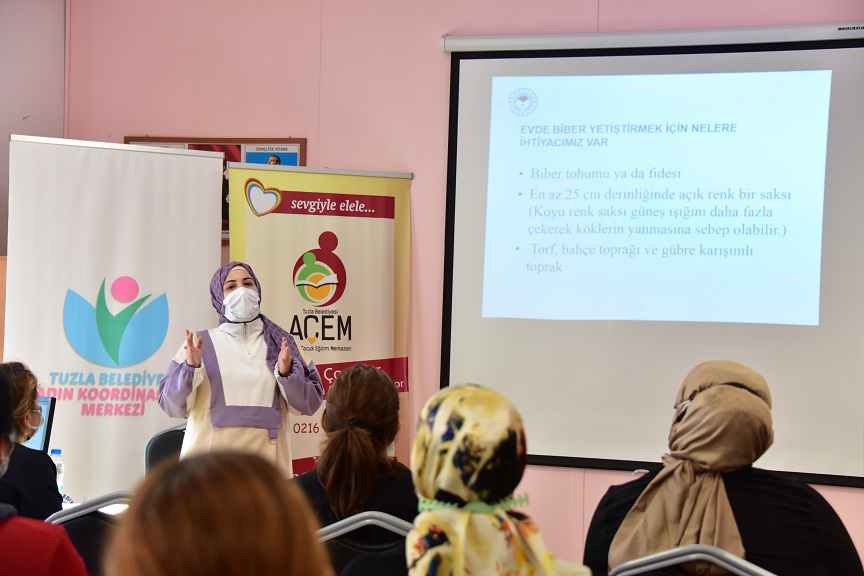 Tuzla’da 3-6 Yaş Arası Çocukların Okul Öncesi Eğitimleri İle Birlikte Kişisel Gelişimlerine Katkı Sunmak İçin Anneleri İle Birlikte Gittikleri Tuzla Belediyesi Anne Çocuk Eğitim Merkezi’nde 15 Ekim Dünya Kadın Çiftçiler Günü’ne Özel ‘Saksıda Sebze Yetiştiriciliği’ Kursu Verildi. İstanbul İl Tarım ve Orman Müdürlüğü Koordinasyonunda Tuzla Belediyesi Anne Çocuk Eğitim Merkezi Destekleri İle Gerçekleştirilen Kurslara Tuzlalı Kadınlar Yoğun İlgi Gösterdi. Tuzla İlçe Tarım Müdürlüğü Ziraat Mühendislerinin Evde Sebze Yetiştirileceğinin Tüm Püf Noktalarını Anlattıkları Derslerin Sonunda Kadınlara Hediyeler Verildi. Derslere Katılan Annelerin Çocukları İse Benim İlk Botanik Bahçem Etkinliği’ne Katıldı.