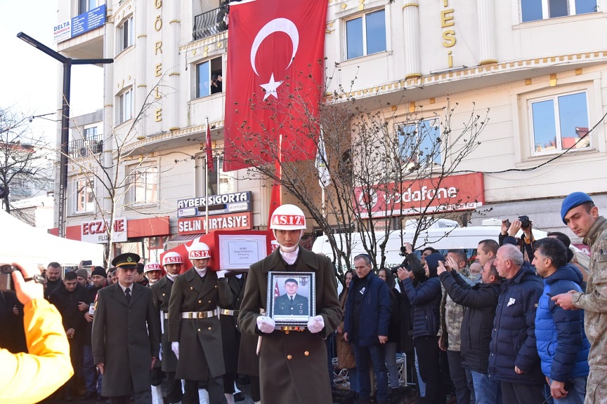 Pençe-Kilit Harekâtı’nda Kahramanca Görev Yaparken Şehit Düşen Piyade Uzman Çavuş Ahmet Köroğlu İçin 14 Ocak Pazar Günü de Görele Cumhuriyet Meydanı’nda Duygusal Bir Cenaze Töreni Düzenlendi.