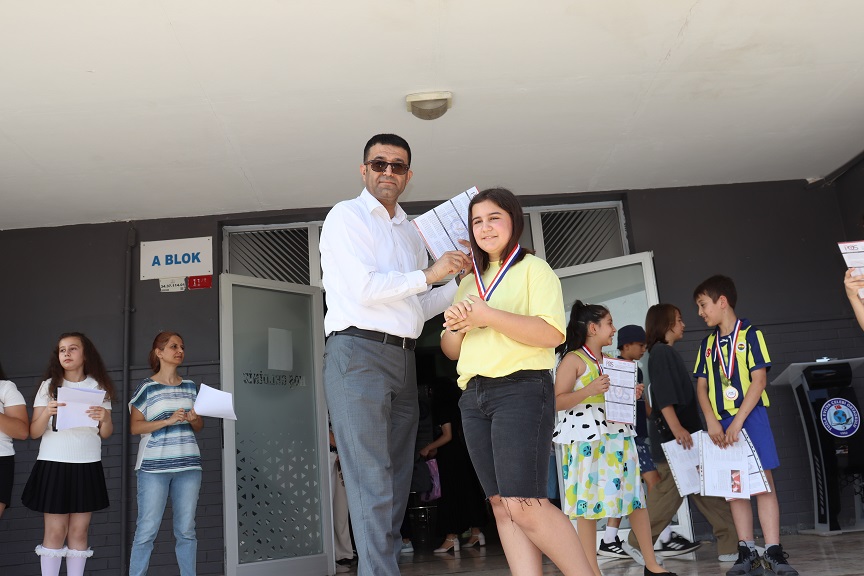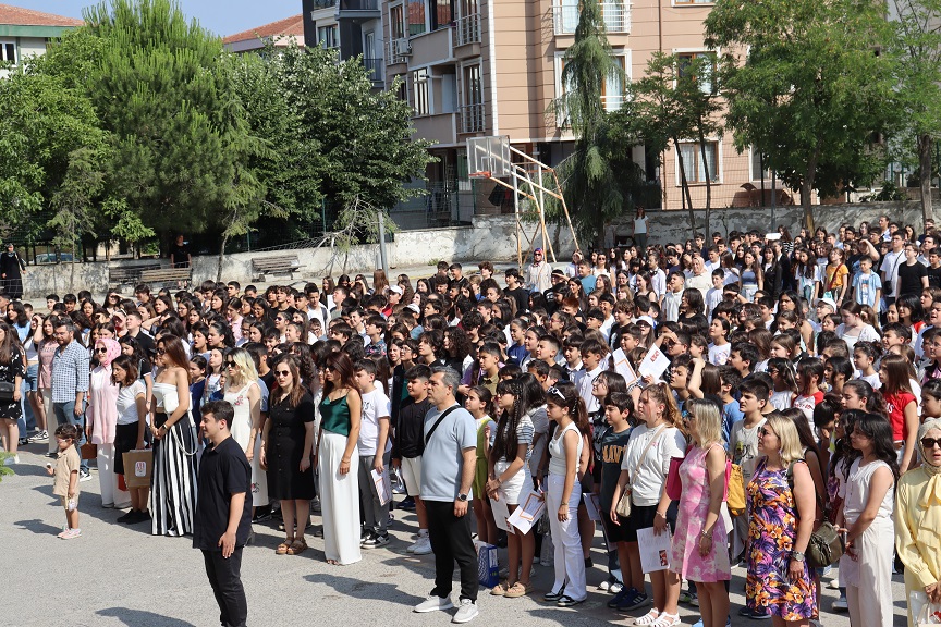 “Bu eğitim yılı boyunca yalnızca ders başarılarınızla değil; sanat, spor, kültür ve bilimsel alanlardaki başarılarınızla da bizleri gururlandırdınız. Resimden müziğe, tiyatrodan halk oyunlarına; spordan sosyal sorumluluk projelerine ve bilimsel araştırmalara kadar gösterdiğiniz ilgiyi ve üretkenliği büyük bir takdirle izledik. Okulumuza kazandırdığınız kupalar ve madalyalar bizleri sevindirdi, gururlandırdı.”